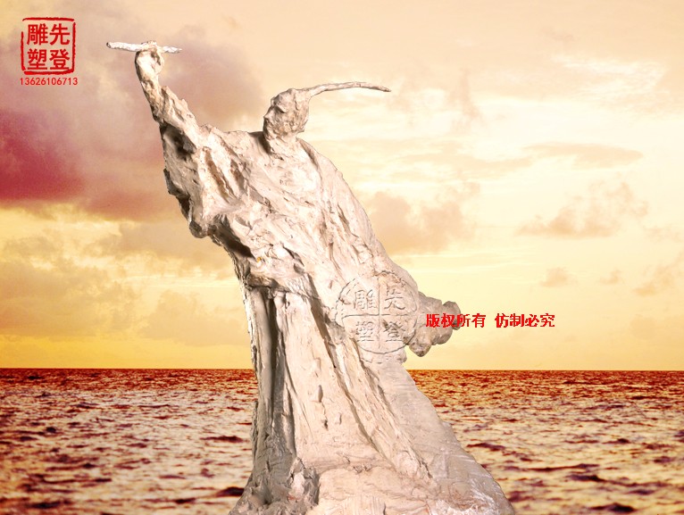 我們今天再看屈原,拋開歷史背景,藝術家通過雕像,向我們傳達了一種怎樣的思想,張開雙臂,仰天長嘯,試問蒼天。我們已然不再糾結于事物的形體,藝術家將我們帶到了屈原的思想深處,他的愛國情操、報國無門,悲憤的心情在他的詩歌里奔騰不息,氣勢恢弘,舉世皆濁我獨清,眾人皆醉我獨醒他唯有仰天長嘆,試問蒼天,何物才能承載如此悲壯的情感。萬籟俱靜,唯有漫漫滄水似在傾聽。我們在深深震撼的同時不得不折服于藝術家的巧奪天工,在他的堅韌與悲壯中,歷史的長河撞擊著我們的心靈。